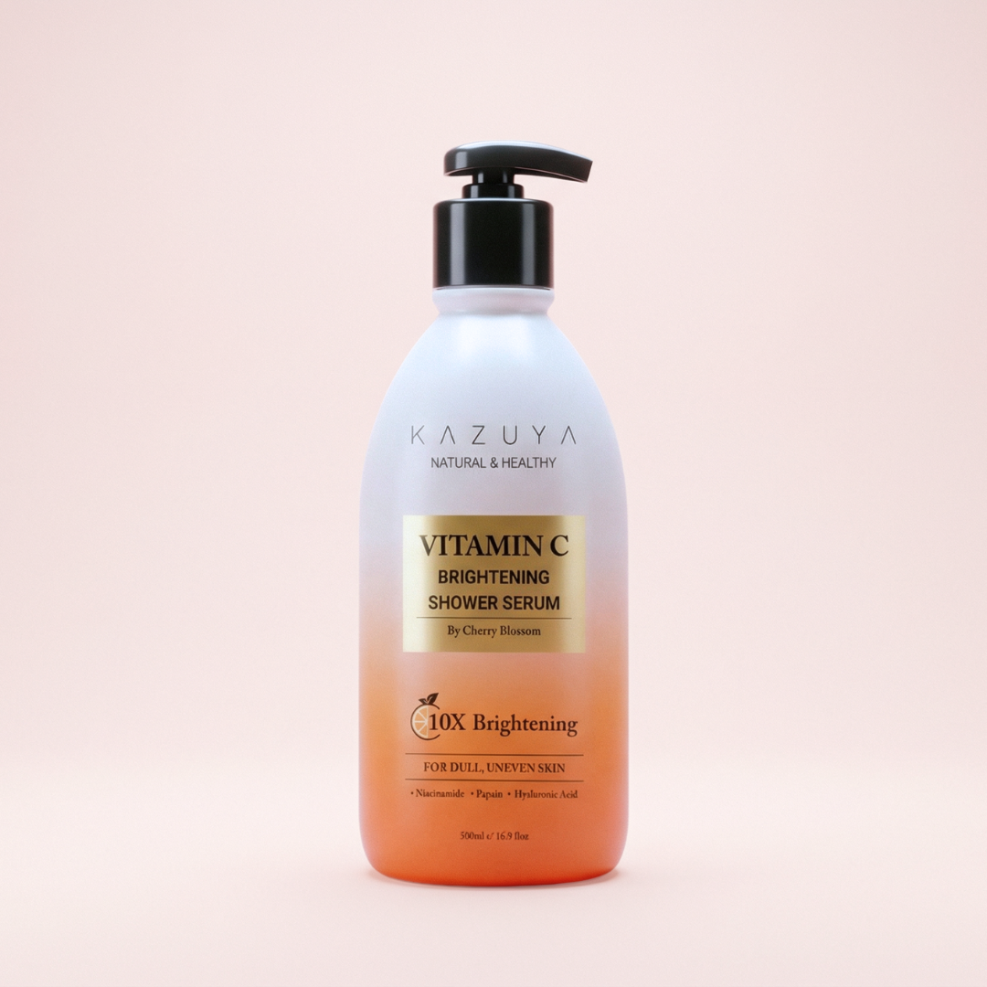 Elevate your daily shower routine with Kazuya Vitamin C Brightening Shower Serum, infused with the delicate essence of Cherry Blossom. This luxurious serum is designed to cleanse, brighten, and deeply nourish your skin in one refreshing step.
